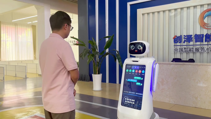 創澤智能消毒機器人和智能大屏機器人等多款機器人亮相蘭洽會,彰顯了創澤AI技術實力與場景深耕能力