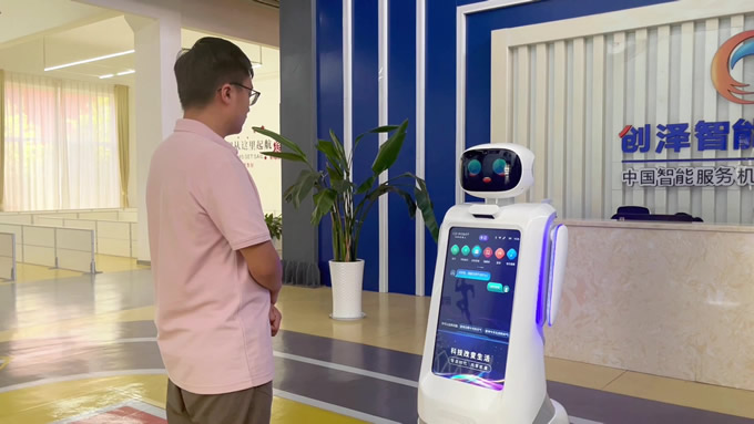 創澤智能消毒機器人和智能大屏機器人等多款機器人亮相蘭洽會,彰顯了創澤AI技術實力與場景深耕能力