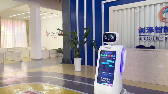 創澤智能消毒機器人和智能大屏機器人等多款機器人亮相蘭洽會,彰顯了創澤AI技術實力與場景深耕能力