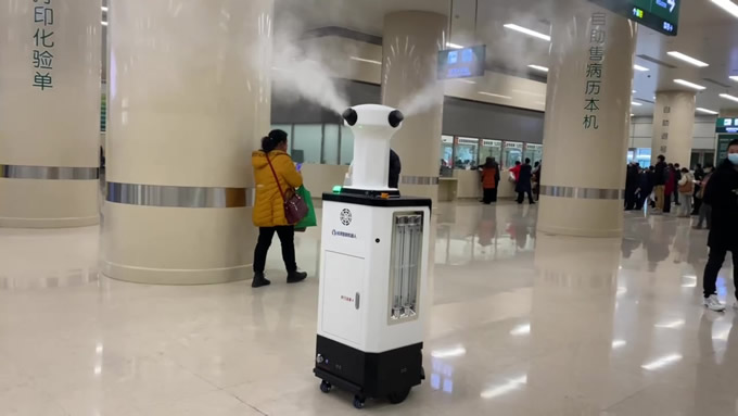 消毒機器人什么場合作用大,大型公共場所使用消毒機器人進行消毒