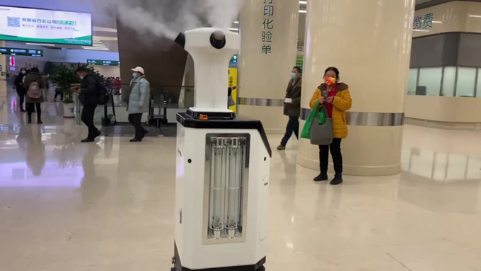 消毒機器人什么場合作用大,大型公共場所使用消毒機器人進行消毒