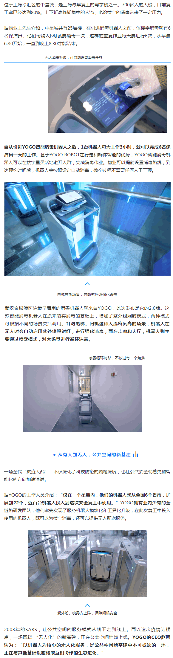 3月13日,L先的機(jī)器人企業(yè)YOGO ROBOT宣布,繼噴霧消殺機(jī)器人在疫區(qū)服役后,他們的新版智能消毒機(jī)器人,也將多面投入到復(fù)工企業(yè)的日常保衛(wèi)戰(zhàn)中。
