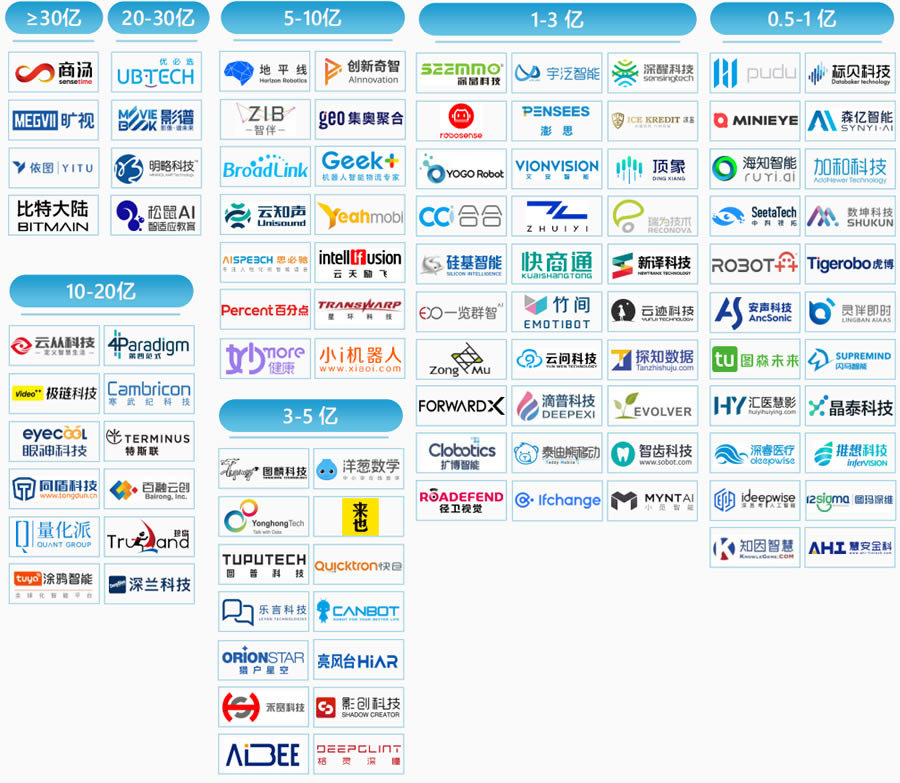 2019年巨頭企業(yè)名單:阿里巴巴,百度,字節(jié)跳動(dòng),滴滴,華為,海康威視,恒生電子,京東,科大訊飛,美團(tuán)點(diǎn)評,美的,螞蟻金服,千方科技,騰訊,小米,東軟...