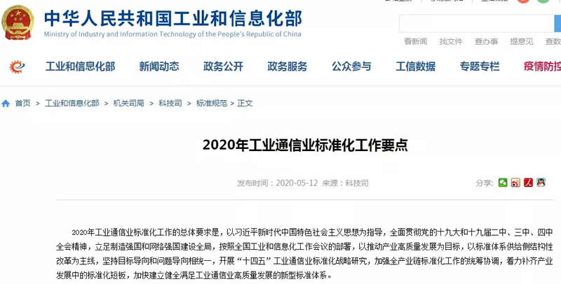2020年5月12日,工信部發布《2020年工業通信業標準化工作要點》,提出聚焦5G網絡與應用、人工智能、工業互聯網、物聯網、數據中心、車聯網、智能制造、無人機、超G清視頻、虛擬現實等重點L域,以專項方式成體系推進重點L域行業標準制定工作,促進產業基礎能力和產業鏈現代化水平提升。