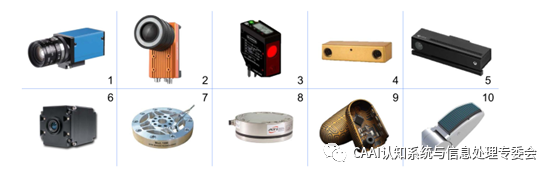 圖2 應用在機器人操控任務中的典型傳感器(1)G速工業相機(2)智能工業攝像頭(3)激光距離傳感器(4)立體相機(5)結構光傳感器(6)飛行時間相機(7)關節扭矩傳感器(8)腕力/扭矩傳感器(9)手指壓力傳感器(10)手指觸覺陣列