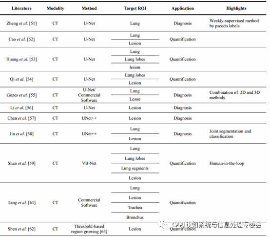 表1 圖像劃分在COVID-19中的應(yīng)用