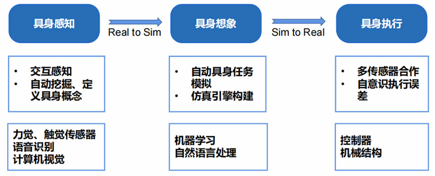 3 具身執行(Execution):基于計算機視覺、機器人學和計算機圖形學,通過多模型訓練,在多傳感器合作下完成任務執行。