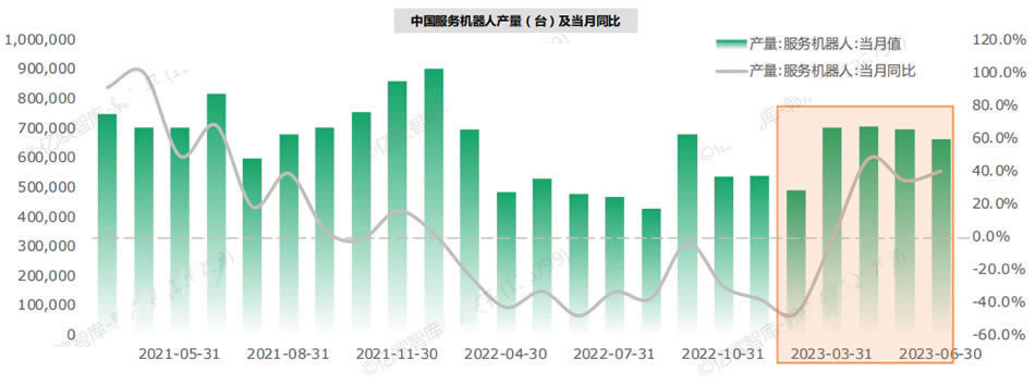 1 服務機器人產量回歸正軌:服務機器人產量在2022年受到疫情以及宏觀經濟下行的影響開始放緩,進入2023年后服務機器人產量同比增長47.6%,結束了連續12個月的同比下滑。