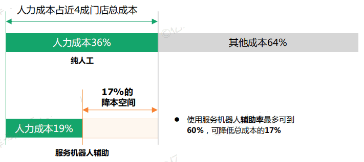 送餐已經(jīng)可以通過機器人自主完成,員工可以把節(jié)省出來的時間和精力,投入在給客人慶生,涮菜涮肉等服務水平的提升上,機器人真正帶來了降本增效