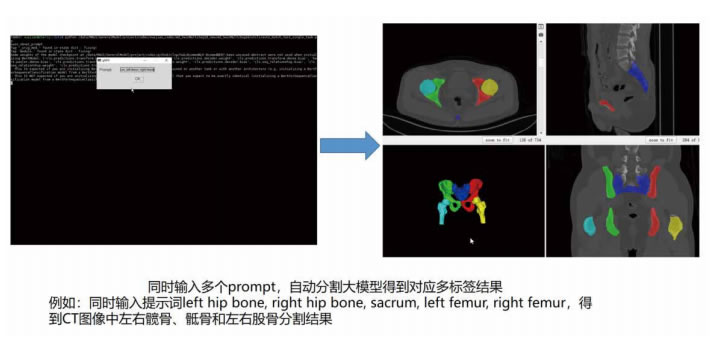 在中山醫院影像科的開發工作中,我們重點針對G狀動脈CT血管造影 (CCTA)、乳腺鉬靶(FFDM)、胸部CT、腦部MR等多模態影像數據進行自動分析,目標是基于病人信息和醫學影像快速生成放射影像報告。目前已經實現D一步目標——開發出一種通用的醫學圖像分割大模型gMIS,該大模型可以只使用少量新樣本,就能快速拓展到新的器官或者病灶,如在大模型學習腎動脈血管分割任務時,僅需10個腎動脈訓練數據就可以達到傳統小模型需要使用200+個數據才能達到的性能水平,顯著提升了醫療AI的研發效率。