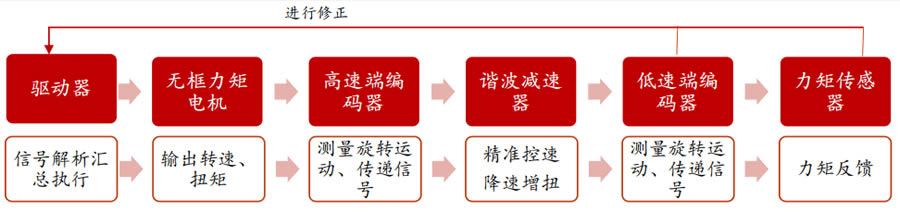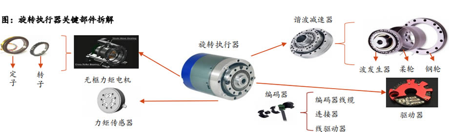 旋轉(zhuǎn)執(zhí)行器:驅(qū)動(dòng)關(guān)節(jié)完成旋轉(zhuǎn)動(dòng)作,減速器為核心部件