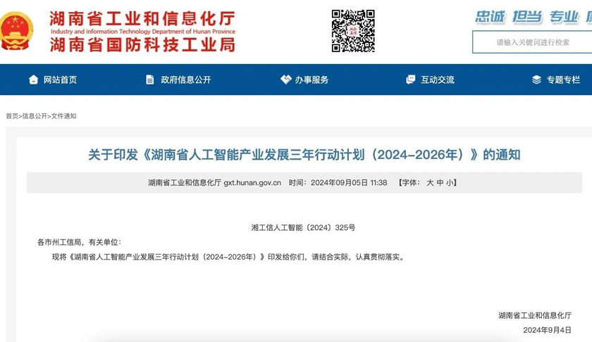 關于印發《湖南省人工智能產業發展三年行動計劃(2024-2026年)》的通知
