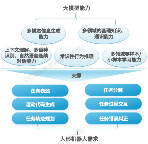 人形機器人在商業化進程中面臨著復雜任務執行難度大,交互能力不足、研發成本G、場景覆蓋低等問題。隨著Al大模型技術不斷發展,大模型可加快人形機器人復雜任務訓練速度,提升任務生成速度及縮短理解周期, 促使人形機器人在語言處理、場景理解、運動控制等方面加速突破,執 行更多復雜任務場景,加速其通用化和智能化進程。