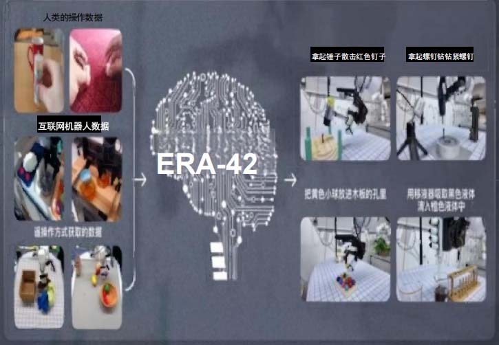 在24年12月公布的ERA-42 是國內(nèi)真正意義上的端到端原 生機器人大模型,比肩世界L先水平。該原生大模型具備端到端原生架構(gòu),強大的模型泛化能力以及規(guī)模 化能力,是真正的具身大模型,與自研五指靈巧手星動XHAND1 結(jié)合后,能夠完成超過100種復(fù)雜靈巧的 操作任務(wù),體現(xiàn)星動紀元對通用智能體的理解與技術(shù)突破