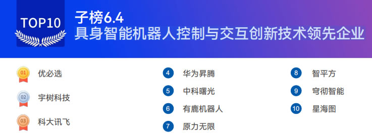 綠的諧波 有鹿機器人 銀河通用 樂聚機器人 逐際動力 星海圖 小鵬汽車 眾擎機器人 云深處 傅利葉智能 開普勒 靈寶CASBOT 星動紀元 智平方 因時機器人 強腦科技 穹徹智能 小雨智造 零次方機器人 千尋智能 加速進化 自變量機器人 靈巧智能 原力無限