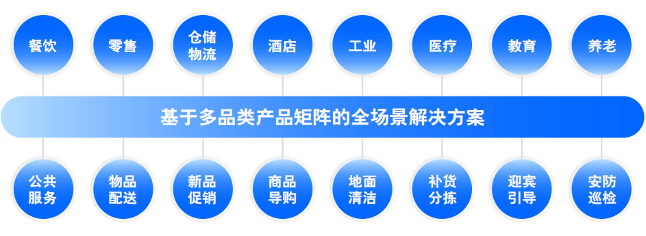 隨著服務(wù)機(jī)器人在餐飲、零售、倉儲物流、酒 店、工業(yè)、醫(yī)療、教育、養(yǎng)老、公共服務(wù)等各行 業(yè)中加速應(yīng)用滲透,服務(wù)邊界持續(xù)拓展深化,與 此同時(shí),在差異化的場景中仍然存在著搬運(yùn)、清 潔、迎賓交互等多種共性的復(fù)合需求。