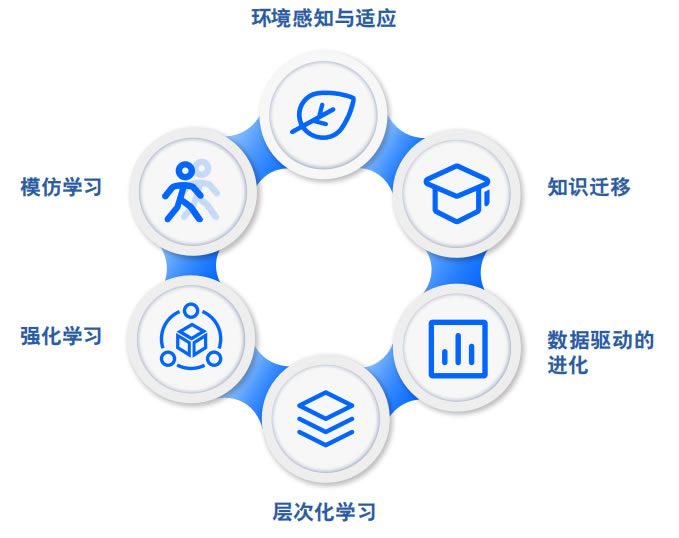 • 知識遷移:AI可以通過遷移學習將從一個任務 中獲得的知識應用于不同但相關的任務上,這 有助于機器人在新環(huán)境或新任務中以更少的試 錯成本快速適應。