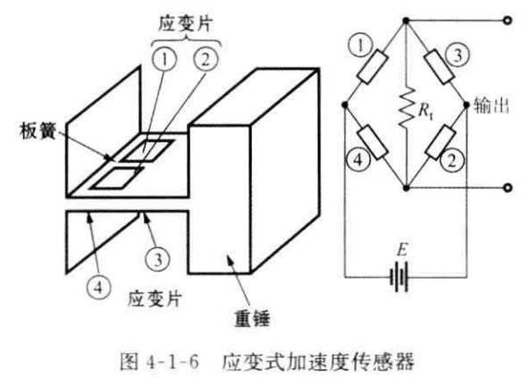 應(yīng)變片加速度傳感器3:應(yīng)變片加速度傳感器是由一個(gè)板簧支承重錘所構(gòu)成 的振動(dòng)系統(tǒng)。在板簧兩面分別貼兩個(gè)應(yīng)變片,應(yīng)變片受振動(dòng)產(chǎn)生應(yīng)變,其電阻值的 變化通過電橋電路的輸出電壓被檢測出來。