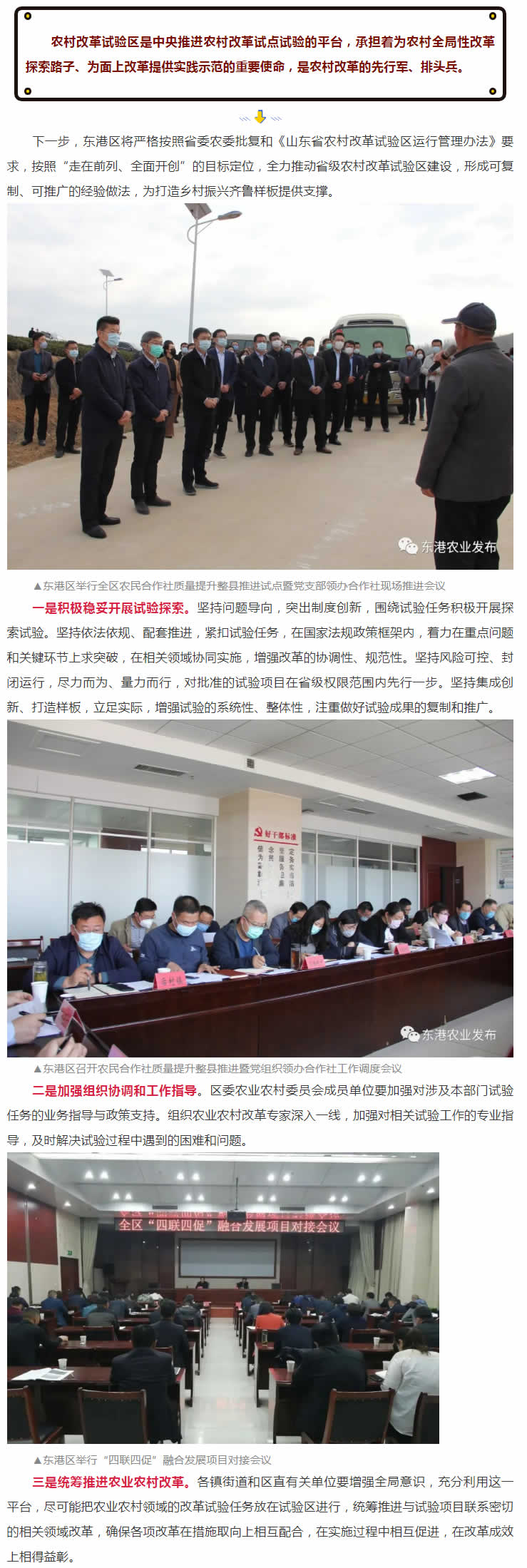 試驗區將承擔和開展“健全黨組織L導下的自治、德治、法治相結合的鄉村治理體系”、“建立農村人居環境治理新機制”、“完善集體資產交易管理機制,健全農村產權流轉交易市場體系”等三項改革試驗任務,每個試驗項目試驗周期原則上不超過3年。省級農村改革試驗區的建設實施,將進一步推進全市農村綜合改革,為解決當前制約農村發展的深層次矛盾,打造鄉村振興齊魯樣板示范區,探索出可復制、可推廣的經驗和模式。