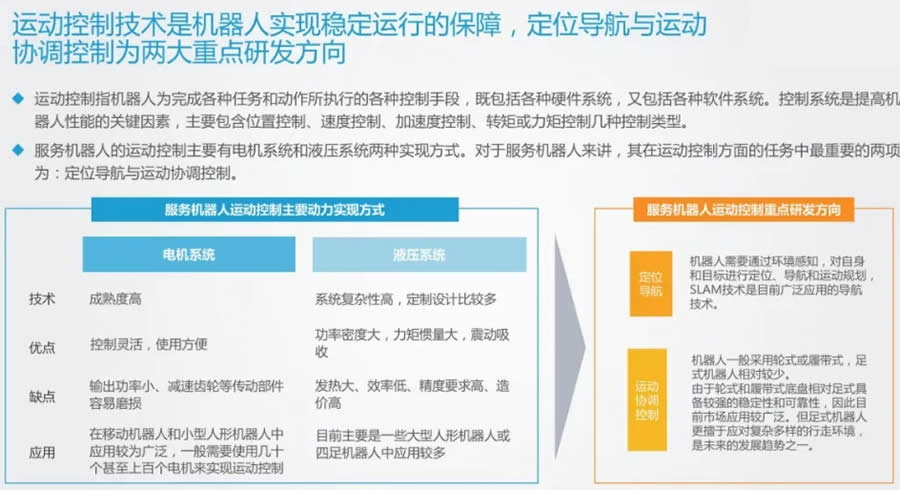 運動控制技術(shù)是機器人實現(xiàn)穩(wěn)定運行的保障,定位導(dǎo)航與運動協(xié)調(diào)控制為兩大重點研究方向