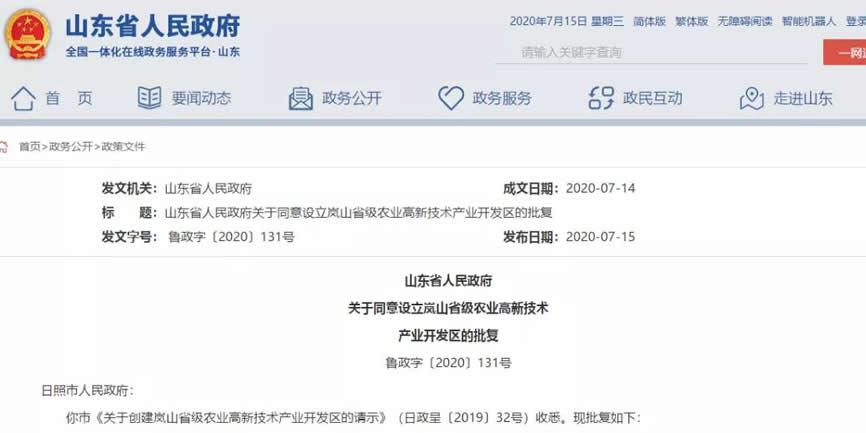 你市《關于創建嵐山省級農業G新技術產業開發區的請示》(日政呈〔2019〕32號)收悉。現批復如下: