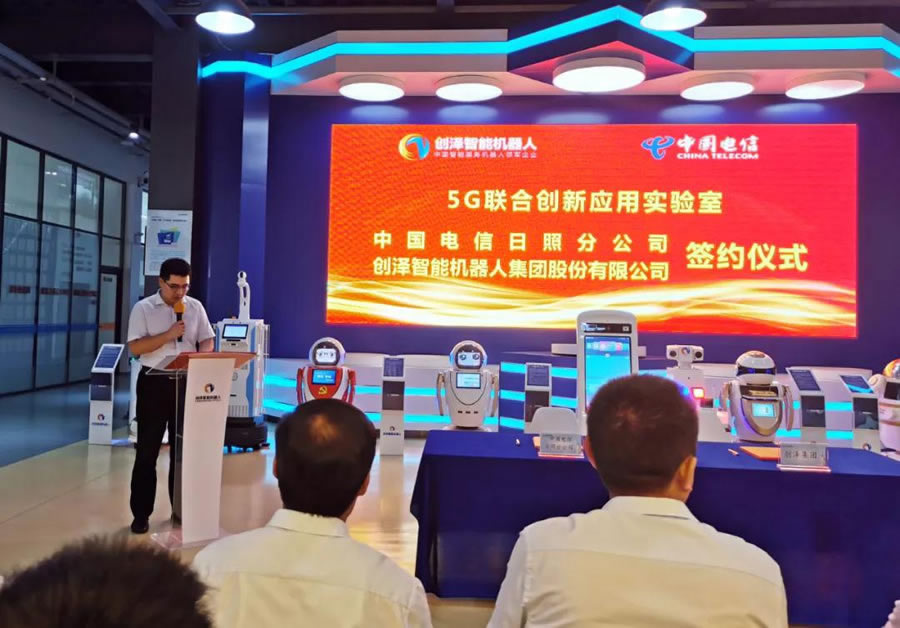 7月29日,創(chuàng)澤智能機(jī)器人集團(tuán)股份有限公司與中國(guó)電信公司5G聯(lián)合創(chuàng)新應(yīng)用實(shí)驗(yàn)室合作協(xié)議簽署儀式在創(chuàng)澤集團(tuán)順利舉行。中國(guó)電信股份有限公司日照分公司劉峰總經(jīng)理、周慶運(yùn)副總經(jīng)理、省公司張洪生主任、張傳隆主任、創(chuàng)澤集團(tuán)董事長(zhǎng)李慶民等L導(dǎo)出席簽約儀式。