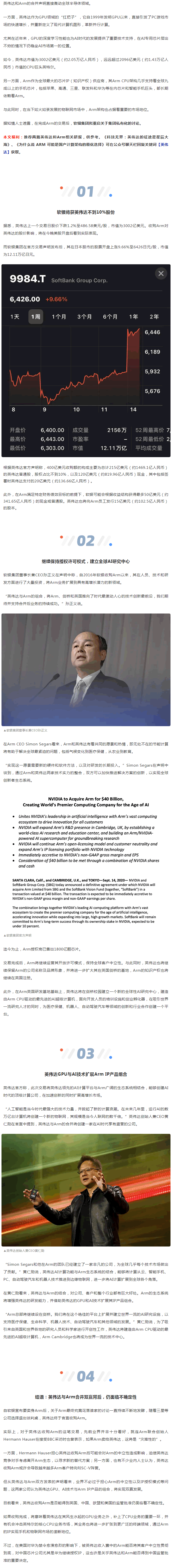 美國(guó)當(dāng)?shù)貢r(shí)間9月13晚,北京時(shí)間今天早間,美國(guó)芯片巨頭英偉達(dá)與日本軟銀集團(tuán)旗下Arm公司分別發(fā)表聲明,宣布英偉達(dá)將以400億美元(約2733.2億人民幣)收購(gòu)Arm,該交易預(yù)計(jì)將在18個(gè)月內(nèi)完成,并且需要得到英國(guó)、中國(guó)、歐盟和美國(guó)的監(jiān)管批準(zhǔn)。