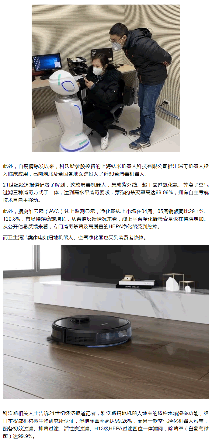 目前,科沃斯商用機(jī)器人將5臺疫情防控機(jī)器人,免費(fèi)捐贈給了蘇州市第五人民醫(yī)院和甘肅4家醫(yī)院(蘭州大學(xué)D一醫(yī)院和蘭州市肺科醫(yī)院、蘭州大學(xué)D二醫(yī)院和甘肅省婦幼保健院,前兩家醫(yī)療機(jī)構(gòu)是甘肅省確定的新型G狀病毒感染的肺炎定點(diǎn)醫(yī)院)。