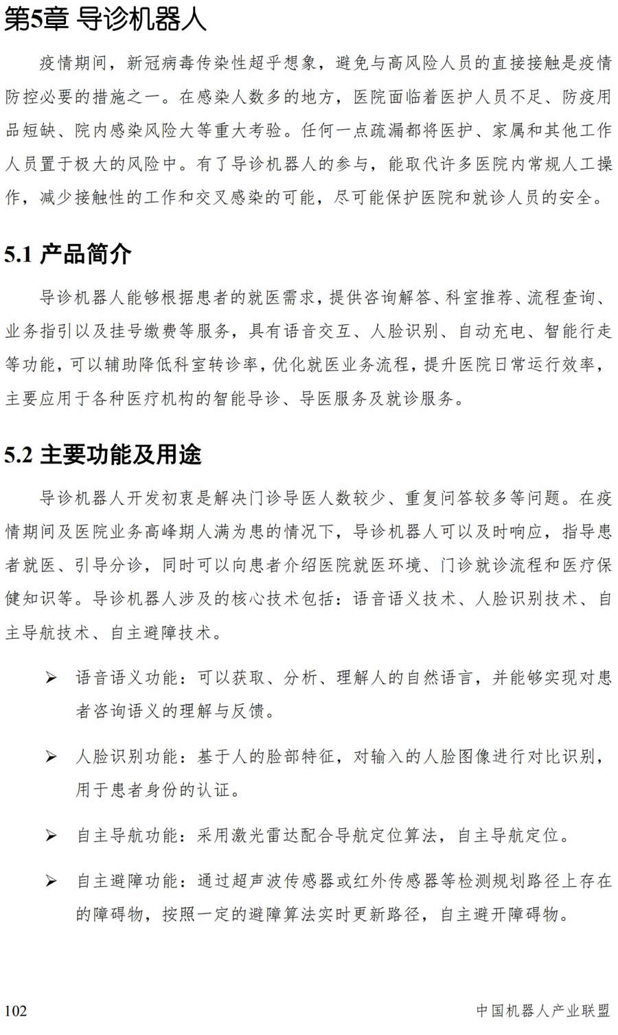 隨著自然語言處理、計算機(jī)視覺、多傳感器融合、大數(shù)據(jù)、AI 等技術(shù)的不斷發(fā)展,導(dǎo)診機(jī)器人的功能將會日趨完善,進(jìn)一步協(xié)助各大醫(yī)院優(yōu)化資源配比,提升醫(yī)療效率,真正滿足改善患者的就醫(yī)體驗的核心需求。例如:借助云平臺與專科醫(yī)療知識圖譜技術(shù),機(jī)器人可與患者進(jìn)行更加人性化、專業(yè)化的導(dǎo)診溝通,更準(zhǔn)確地定位患者所問詢的病情;建立患者病例病史數(shù)據(jù)庫,為患者提供更加準(zhǔn)確快速的分診服務(wù),減少病人等待時間,優(yōu)化醫(yī)院診療體驗;提升移動導(dǎo)航性能, 快速且實時更新動態(tài)場景地圖信息,做到零碰撞,無差錯地科室導(dǎo)引;連接醫(yī)療物聯(lián)網(wǎng)資源,實現(xiàn)跨區(qū)域?qū)г\信息共享,促進(jìn)分級診療制度的推廣;具備典型病癥數(shù)據(jù)庫,通過檢測患者的體貌癥狀,判斷患者病癥傳染性;提G語音交互的抗環(huán)境干擾能力和準(zhǔn)確性,可以更好的在醫(yī)院等環(huán)境嘈雜的應(yīng)用場景下,為患者提供準(zhǔn)確的導(dǎo)醫(yī)服務(wù)。