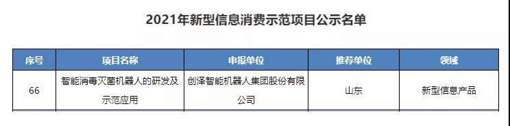 近日,國家工信部正式發布“2021年新型信息消費示范項目公示名單”。創澤集團的“智能消毒滅菌機器人的研發及示范應用”項目,成功入選2021年新型信息消費示范項目。