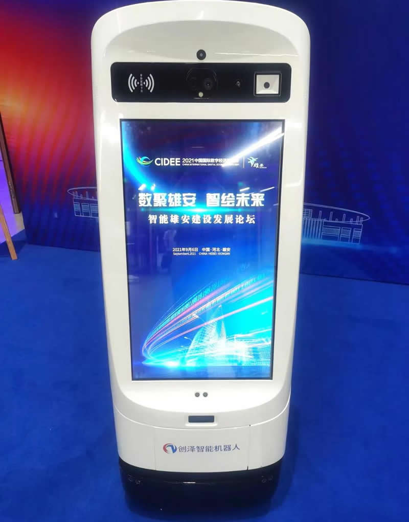 9月6日,由2021中國國際數字經濟博覽會組委會、雄安新區管理委員會主辦的智能雄安建設發展論壇在雄安市民服務中心開幕。創澤集團受邀攜智能消毒殺菌機器人、智能大屏機器人等系列新產品亮相智能雄安建設發展論壇,讓現場觀眾近距離感受科技為生活帶來的智能服務體驗。