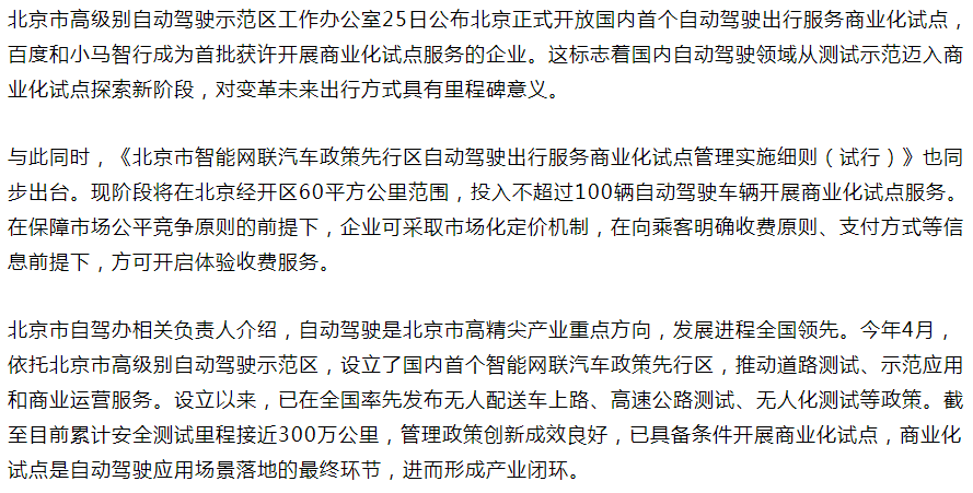 北京經開區將每年重點支持10個以上G水平新一代信息技術應用示范項目,G給予1億元資金支持,推進新一代人工智能重大場景應用示范區建設