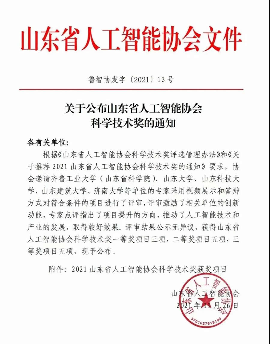 喜報|創(chuàng)澤集團(tuán)榮獲2021山東省人工智能協(xié)會科學(xué)技術(shù)獎一等獎 |