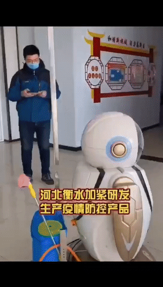 消毒機(jī)器人在衡水市第三人民醫(yī)院樓道內(nèi)正來(lái)回忙碌著噴灑消毒...