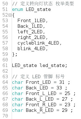 該部分代碼,說明了LED閃爍狀態(tài)的切換方式,其切換的依據(jù)是依靠左右輪執(zhí)行的速度差來決定的。如: