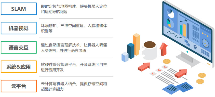 芯片主要負責(zé)機器人作業(yè)的數(shù)據(jù)計算和指令下達;控制器主要負責(zé)發(fā)布和傳遞動作指令;伺服舵機主要用于驅(qū)動機器人的關(guān)節(jié);減速器主要安裝在機器人關(guān)節(jié)處