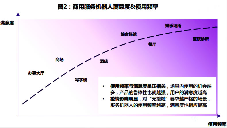 受到近兩年受疫情催化的影響,對(duì)于“避免人員接觸”要求越G的場景下,服務(wù)機(jī)器人的使用頻率越G,客戶滿意度也會(huì)相應(yīng)地提升;但需要注