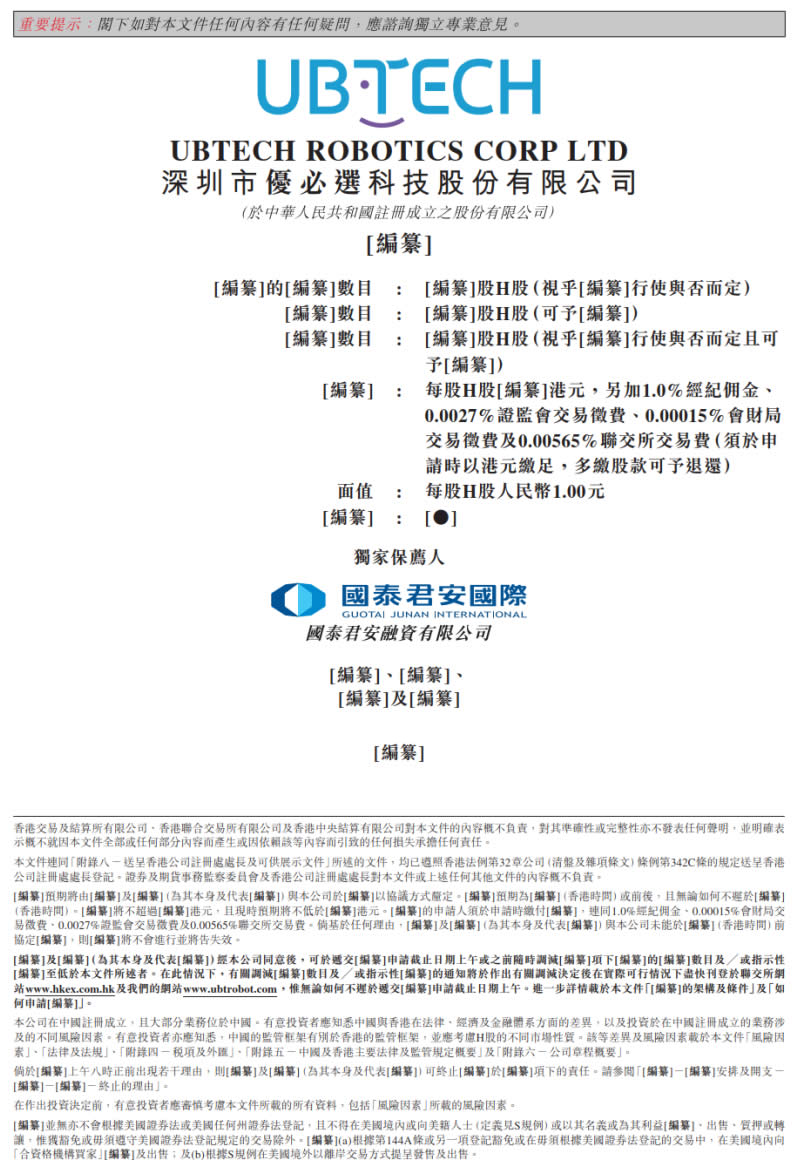 1月31日晚,優必選科技提交赴港上市申請,沖刺“人形機器人D一股”。