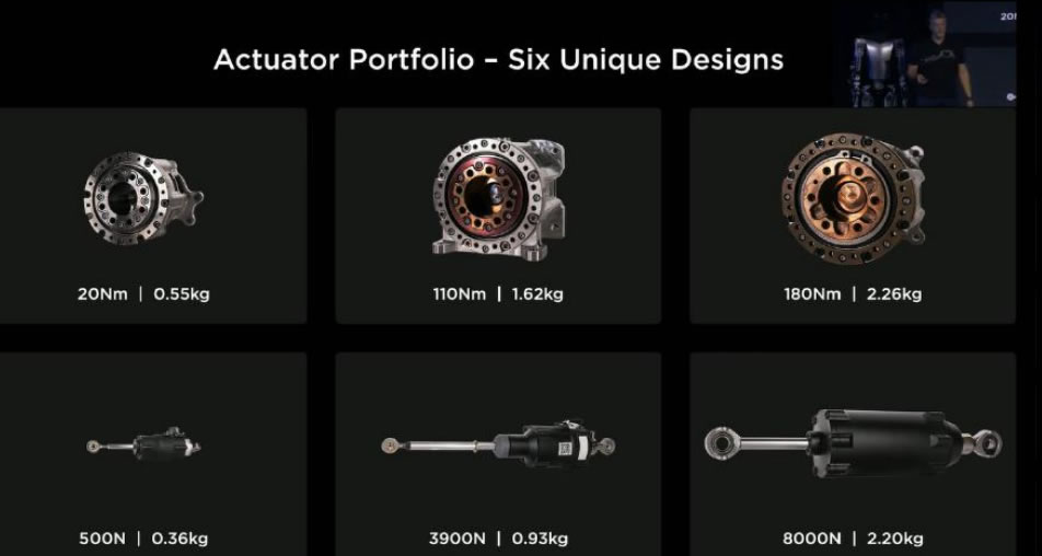 28個定制關節驅動器,復用汽車動力總成設計經驗,設計6種關節驅動器,包括3種不同規格的舵機(采用諧波減速器)和3種