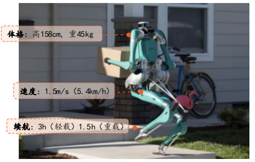 Digit從功能出發進行設計,有望在物流L域實現應用。不同于波士頓動力Atlas對運動能力的冗余設計,Agility致力于將機 器人投入實際應用。Digit主要為物流場景設計,可以拿起和堆疊18kg重的箱子,進行移動包裹、卸貨等工作, “后一 公里”配送功能也正在開發當中。Agility公司創始人認為,與小車相比,雙足機器人在物流L域會展現出更大的靈活性。