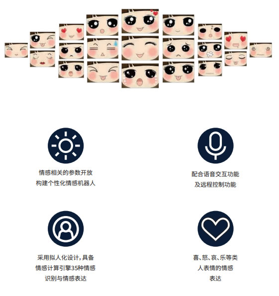 智能課堂機器人采用機器人視覺系統,深度語音交互系統、先進的語音引擎,搭載環形麥克風陳列、運用聲控識別、語義理解、人臉識別